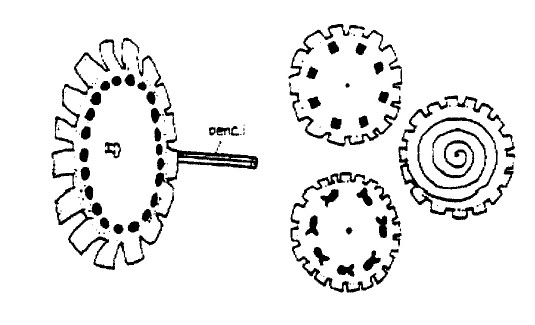 - Stand in front of mirror. Spin pencil between hands as you peer through the notches. Each design will produce a different optical illusion as the spinning elements appear to merge.