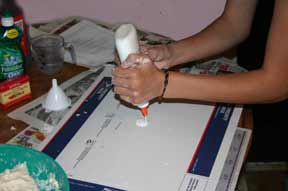 • Adult partners carefully pour the wax into the mold. Make sure the wick is straight.