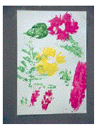 • Press the leaves and flowers lightly on the paper or cloth, paint side down.