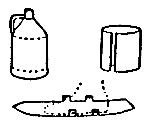 • For a pair of shorty skis, remove top and bottom of two gallon plastic bottles.