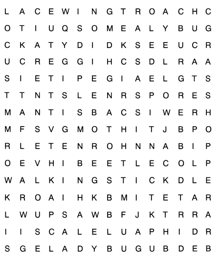 • Hand out sheets of paper with the names of the different bugs listed in a mixed up order.