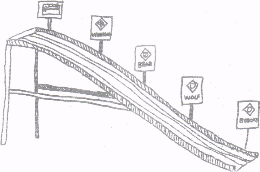 Cubmaster - We've all had a greet time tonight watching the pinewood derby cars race down this track. They really speed downhill don't they? Well, you can go up hill on this track too. It is a little harder, but it is worth the climb from Bobcat to Tiger to Wolf to Bear to Webelos and to Arrow of Light. Some of our Cub Scouts who have made the climb as far as tiger please come forward with you parents