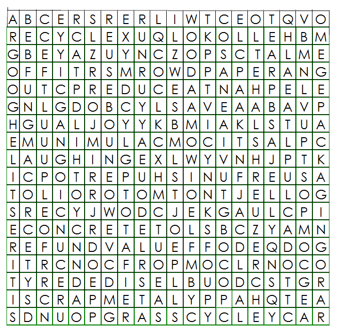 There are lots of recycling word searches out on the web. Just Google "recycling word search" I chose this one because it was put up by a government group. CD