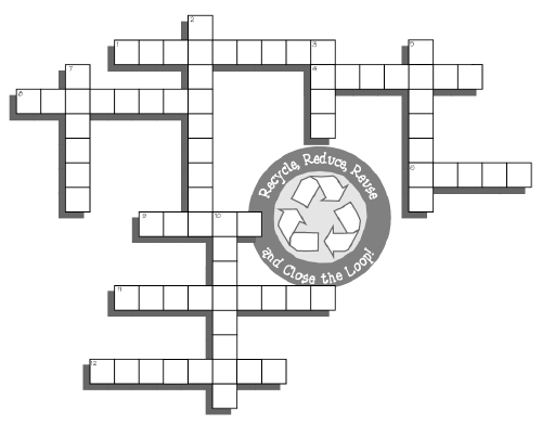 The crossword and maze below are just two activities from a tremendous 26 page booklet you can download at www.energyquest.ca.gov/saving_energy/RECYCLINGFactsGamesCrafts02.PDF -