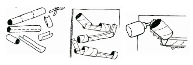 • Lay the tubes on the large cardboard so that they are all slanted slightly downward. Each tube should empty into the next tube.