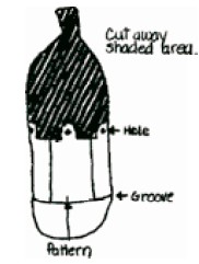 • Use the pencil to punch a hole centered one half inch below each opening. Make the holes only big enough to insert the dowel.