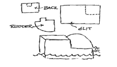 Make slit near front bottom for rudder, made from cut out section, and notch in