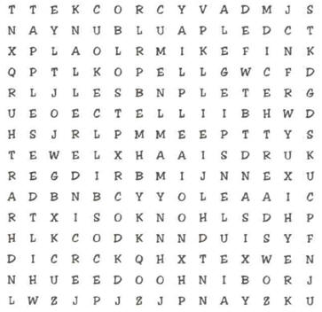 puzzle above. Words may be diagonal, horizontal or vertical. Words may be