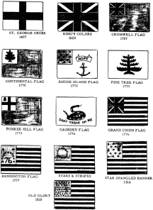 King’s Colors: In 1620 when the Mayflowers landed in America, a new flag was used for the colonies. Our English forefathers brought with them their nation’s flag, the British Union Jack, or King’s Colors. Obviously this flag did not fulfill the need of the independent desires of the colonies.