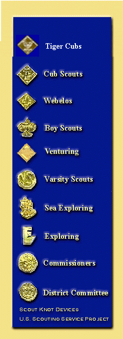 Materials found at U. S. Scouting Service Project, Inc. Websites may be reproduced and used locally by Scouting volunteers for training purposes consistent with the programs of the Boy Scouts of America (BSA), the World Organization of the Scout Movement (WOSM) or other Scouting and Guiding Organizations. No material found here may be used or reproduced for electronic redistribution or for commercial or other non-Scouting purposes without the express permission of the U. S. Scouting Service Project, Inc. (USSSP) or other copyright holders. USSSP is not affiliated with BSA or WOSM and does not speak on behalf of BSA or WOSM. Opinions expressed on these web pages are those of the web authors. You can support this website with in two ways: Visit Our Trading Post at www.ScoutingBooks.com or make a donation by clicking the button below.