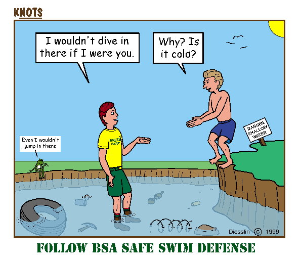 Copyright © 2008 Richard Diesslin, cartoonist of the KNOTS or Not Scouting Cartoons! Used by permission. This image may not be used or reproduced in any form without the expressed written permission of the owner.  Permission is usually granted for local troop/pack hardcopy newsletter use, but you need to ask (it's free)! Also, print resolution images (color and black-and-white) and permissions are available with purchase of the KNOTS or Not Scouting Cartoon CD! or one of the supplements. Thank you for your interest in KNOTS cartoons. Rich's main web site is at www.the-cartoonist.com.